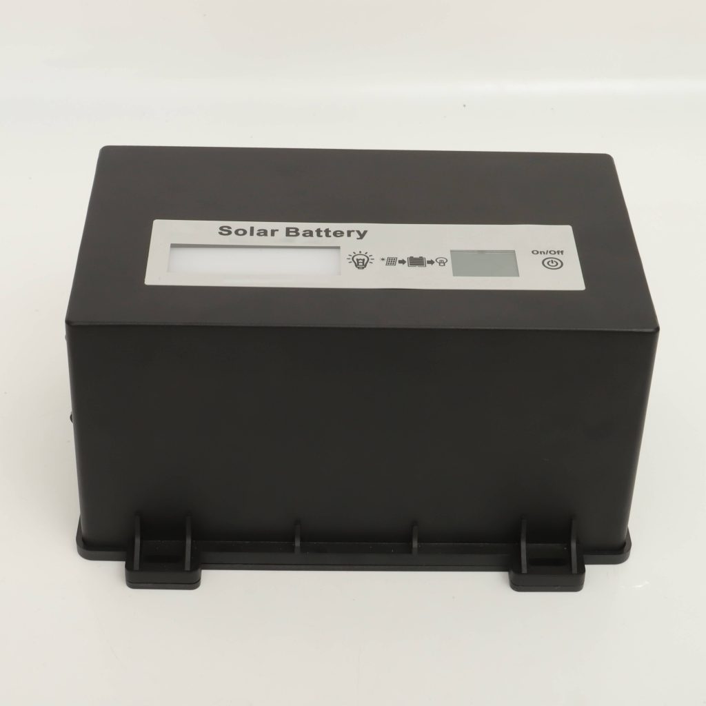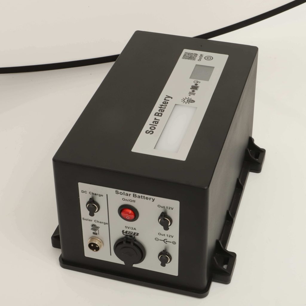 - Detta solbatteripaket har en inbyggd fotovoltaisk panel laddningskontroller. Installera solcellspanelen så nära batteriet som möjligt för att undvika spänningsfall som orsakas av alltför långa ledningar och påverka den normala batteriets laddningseffektivitet.