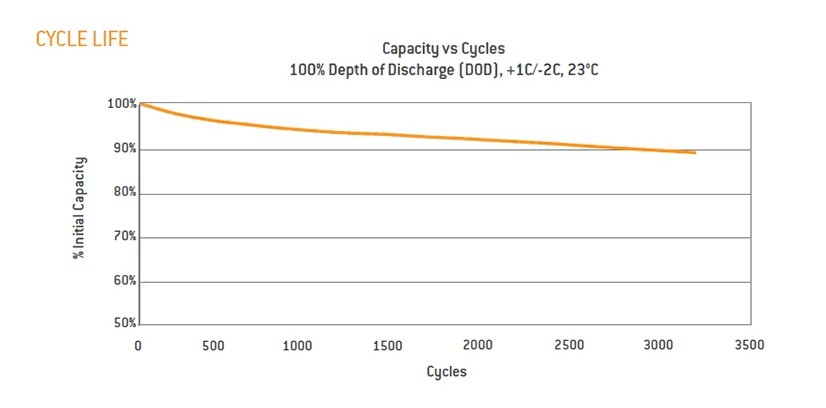 Mycket hög kontinuerlig urladdningskapacitet @10C--200A, burst-effekt-600A.