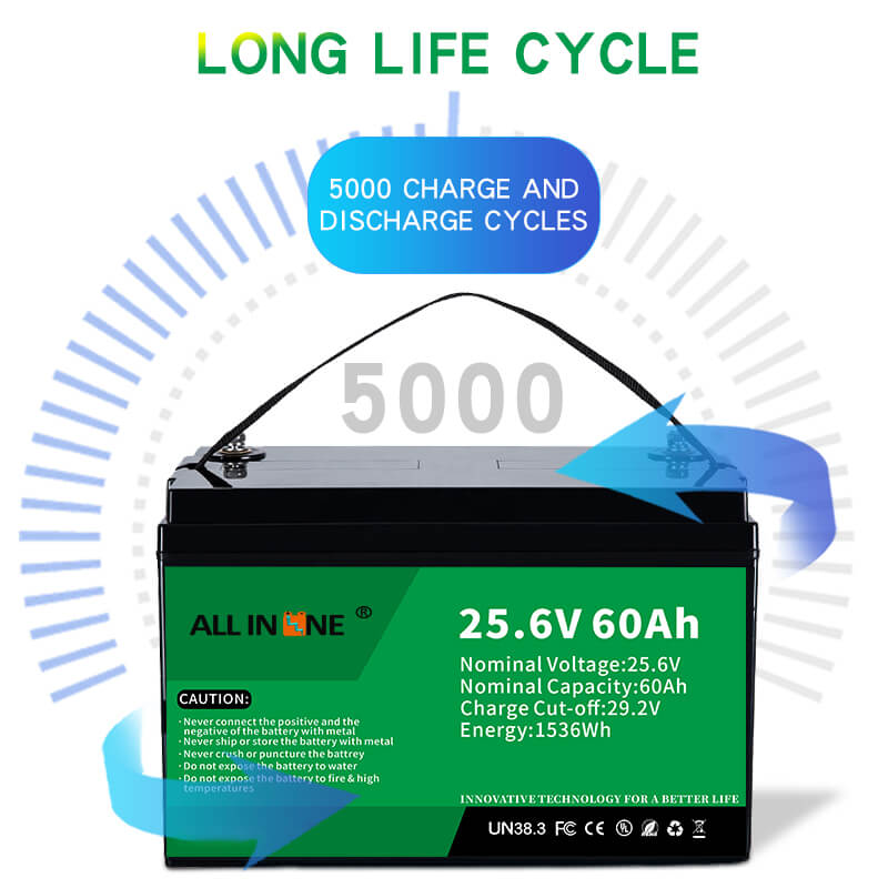 Detta 25,6V 60Ah LFP -batteri kan vara en perfekt ersättning för AGM/GEL -batteri, ALL IN ONE erbjuder också anpassade batterier med olika kapacitet, dimensioner och funktioner enligt kundens specifika krav. Jämfört med AGM/GEL blybatterier har ALL IN ONE Li-ion (LiFePO4) substitutionslösningar följande fördelar: