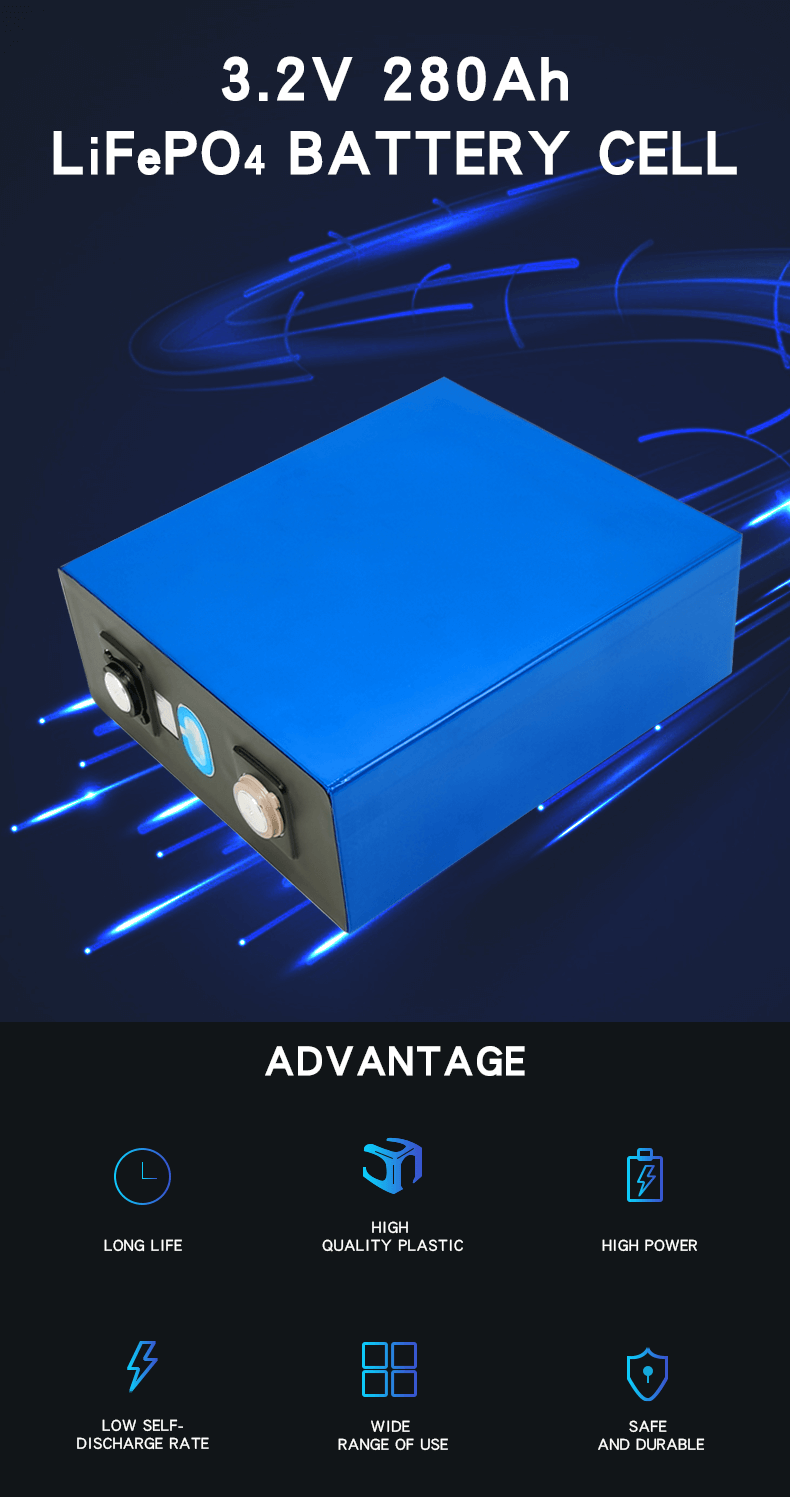 Denna UL -certifierade 3,2V 280Ah LiFePO4 battericell har följande fördelar: