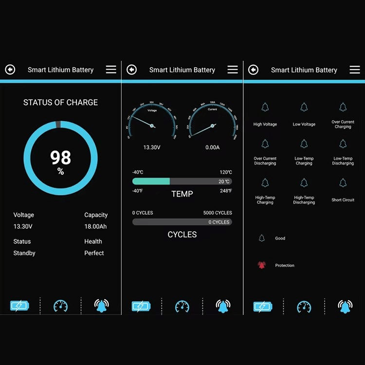BT BMS can precisely monitor real-time parameters( volt, current, state of charge, cycle time, temperature) and alarm (high volt, low volt, over current, short circuit),keep you informed about functioning of your battery, and also State of Charge and how much energy left, save your hundred of dollars buying an external battery monitor.