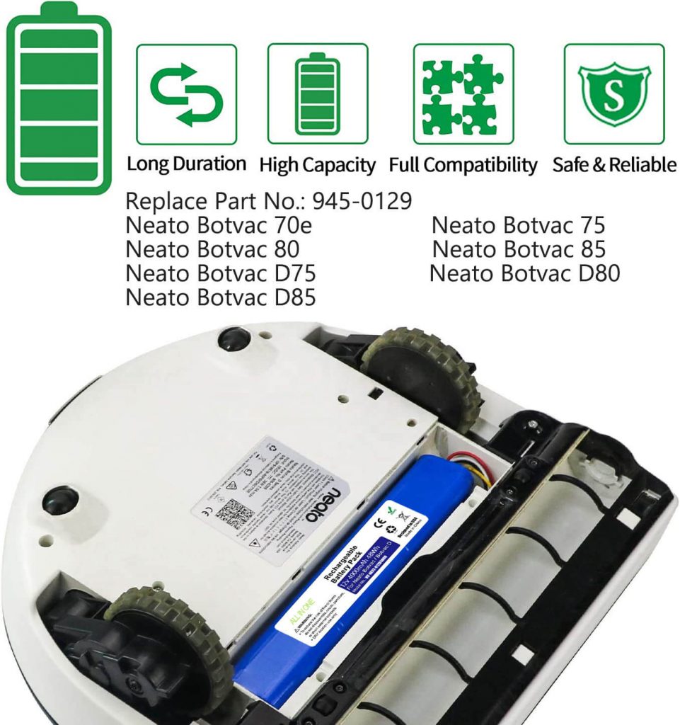 Kompatibel med verktygsmodeller | Kompatibel med: * Ersätt artikelnummer: 945-0129 * Neato Botvac 70e * Neato Botvac 75 * Neato Botvac 80 * Neato Botvac 85 * Neato Botvac D75 * Neato Botvac D80 | |||