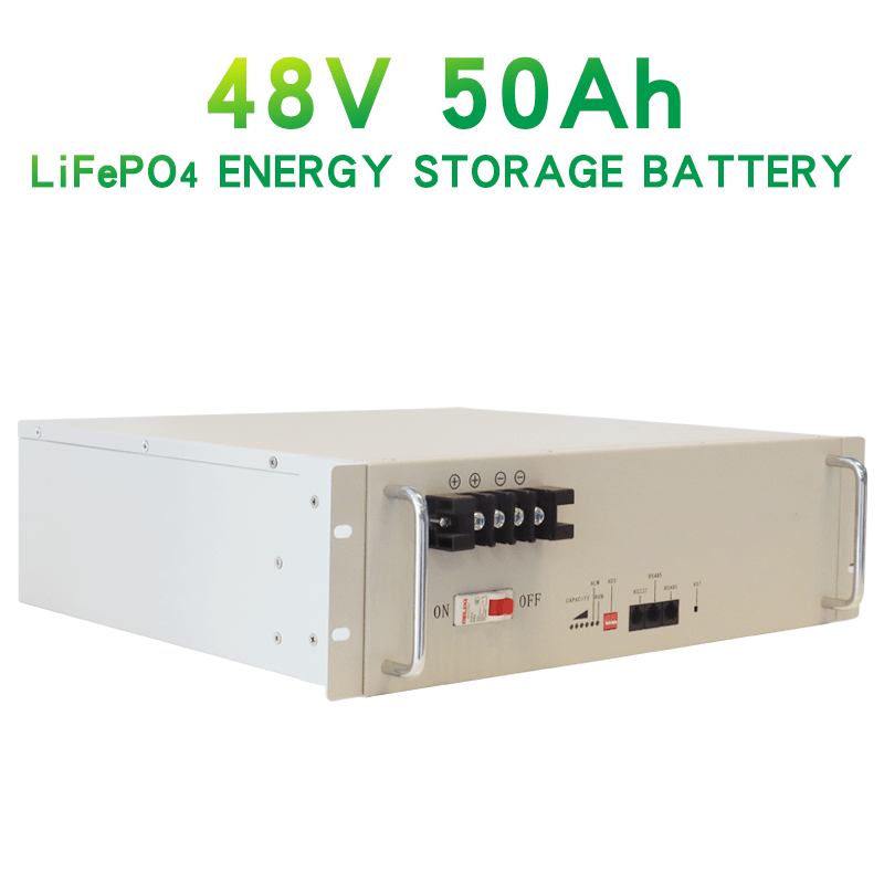 Detta 48V 50Ah LFP-batterisystem har inbyggt BMS och låda i rostfritt stål målad i svart eller vitt.