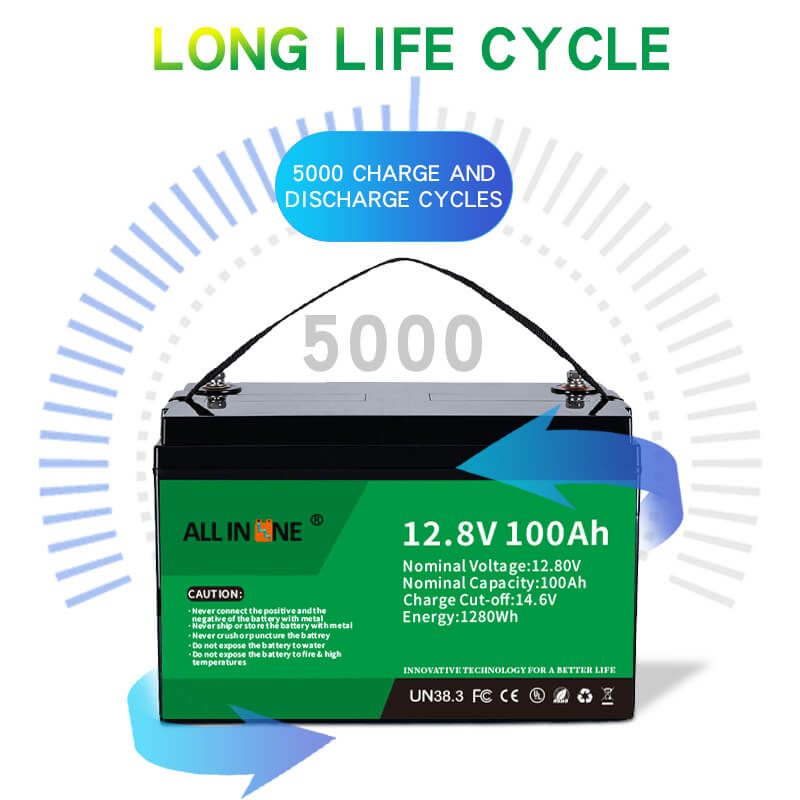 Detta 12.8V 100Ah LFP -batteri kan vara en perfekt ersättning för AGM/GEL -batteri, ALL IN ONE erbjuder också anpassade batterier med olika kapacitet, dimensioner och funktioner enligt kundens specifika krav.