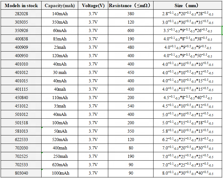 produktnamn | 581013 3,7V 50mAh polymer litiumbatteri | Anmärkning | |
