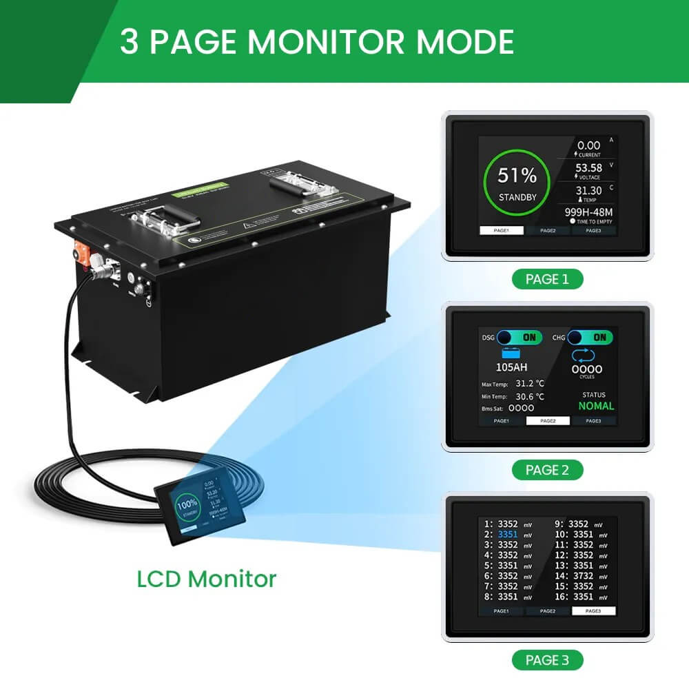 | LFP48-105 | 51.2V | 105Ah | 5376Wh | 530*290*240 mm | ≈46 kg |