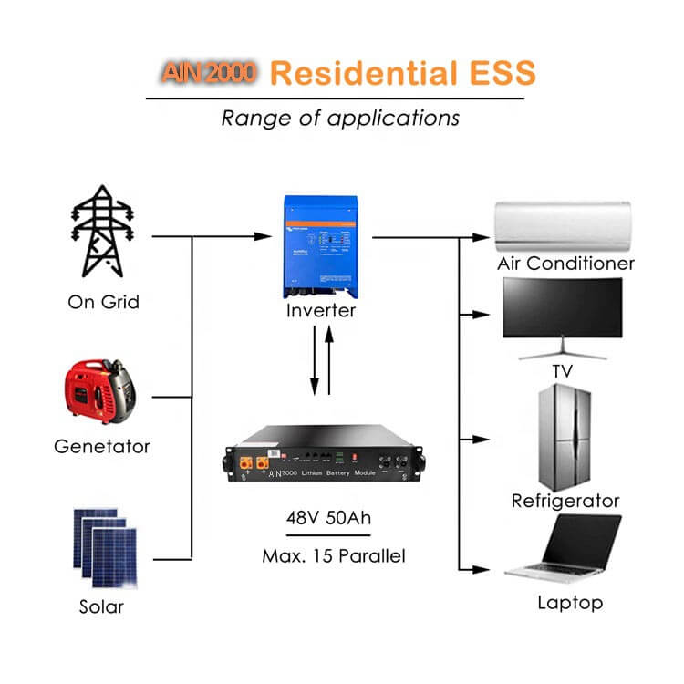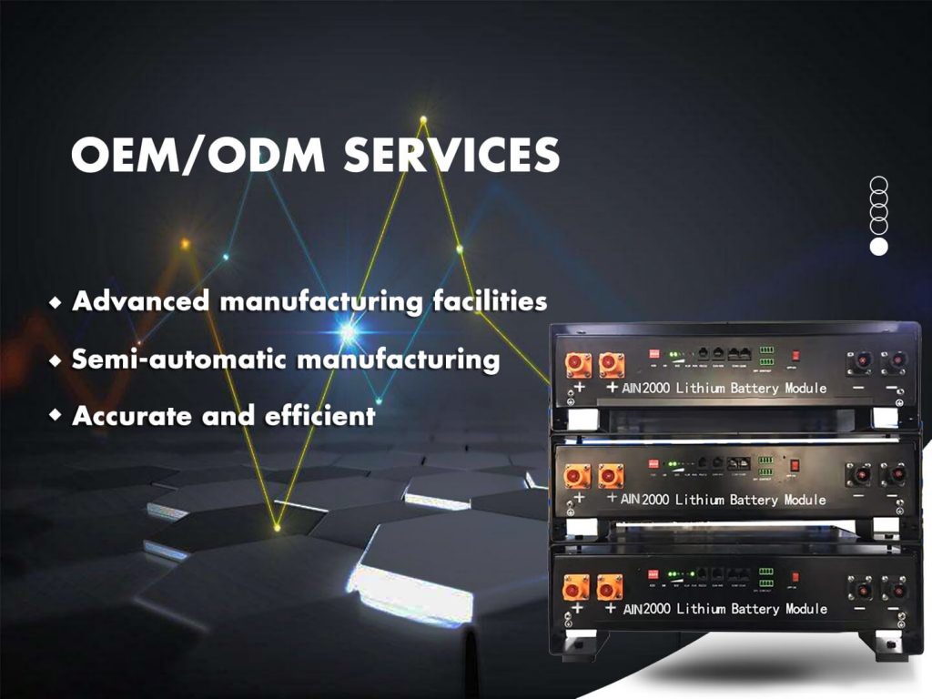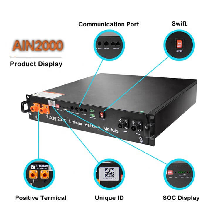 1.AIN2000 48v solsystembatteri är utvecklat med högpresterande LFP-cell 3,2V 50Ah och EV-standardstruktur för att garantera säkerhet och enastående livslängd.