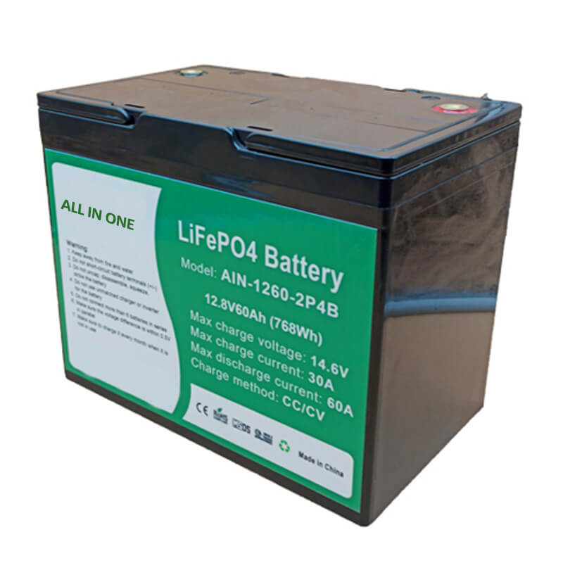 AIN-12150-2P4B | 12,8 V. | 150 Ah | 75A | 150A | 530*208*215 | 17.0 | Plast Svart |