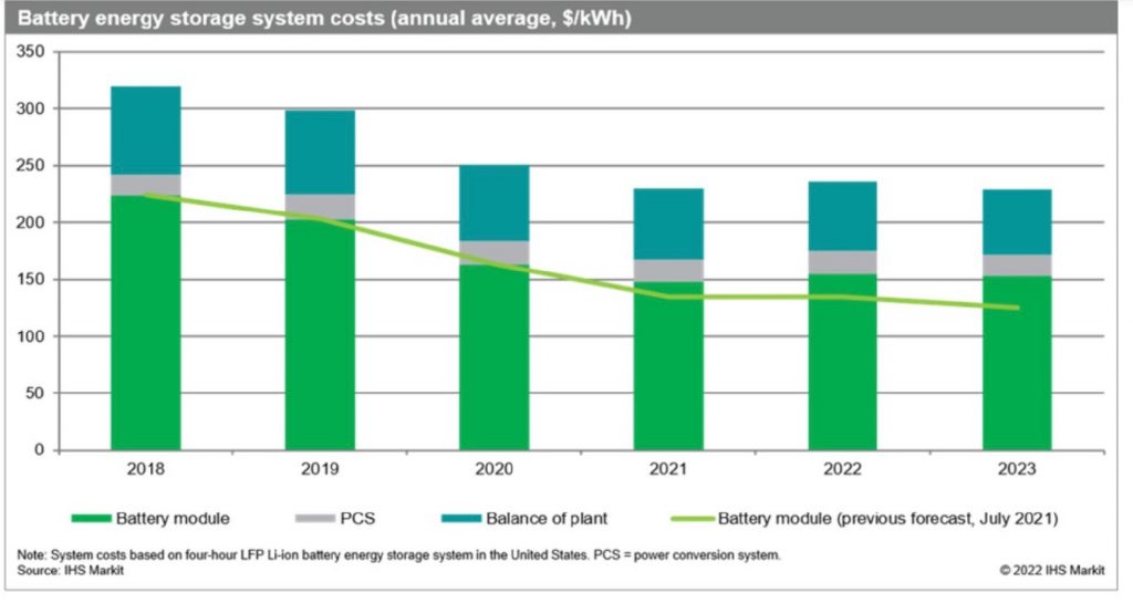 I en ny vitbok förutspådde IHS Markit att stigande råvarupriser skulle sätta ytterligare prissänkningar på elbilsbatterier på is till 2024. Den analysen förutspådde att de genomsnittliga priserna på elbilar för 2022 kommer att vara 5 % högre än 2021, mestadels på grund av ökade bil- industrins efterfrågan på litiumjärnfosfatbatterier (LFP).